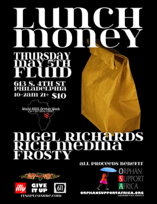 Our friend Nigel Richards will be spinning tonight at Fluid along with Rich Medina and Frosty, with proceeds benefiting Orphan Support Africa.