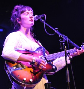 Fans at Union Transfer last night made no secret of their adoration for Annie Clark, the beautiful and multi-talented ingénue who hails from Oklahoma and performs under the name St. Vincent. With her endlessly long legs, high cheekbones and bright pink pout, the songstress had men (and women) screaming, “Marry me, Annie!”